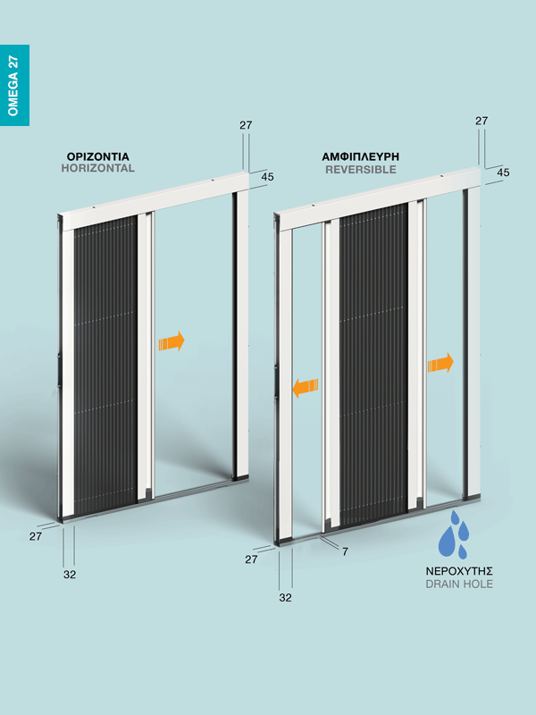 Η OMEGA 27, σίτα πλισέ οριζόντιας κίνησης με πλευρικά κορδόνια, προσφέρει στιβαρές κατασκευές που ξεχωρίζουν για την απόλυτη ρύθμιση και σωστή λειτουργία τους, χωρίς κανένα συμβιβασμό τόσο σε ποιότητα όσο και στην εφαρμογή.