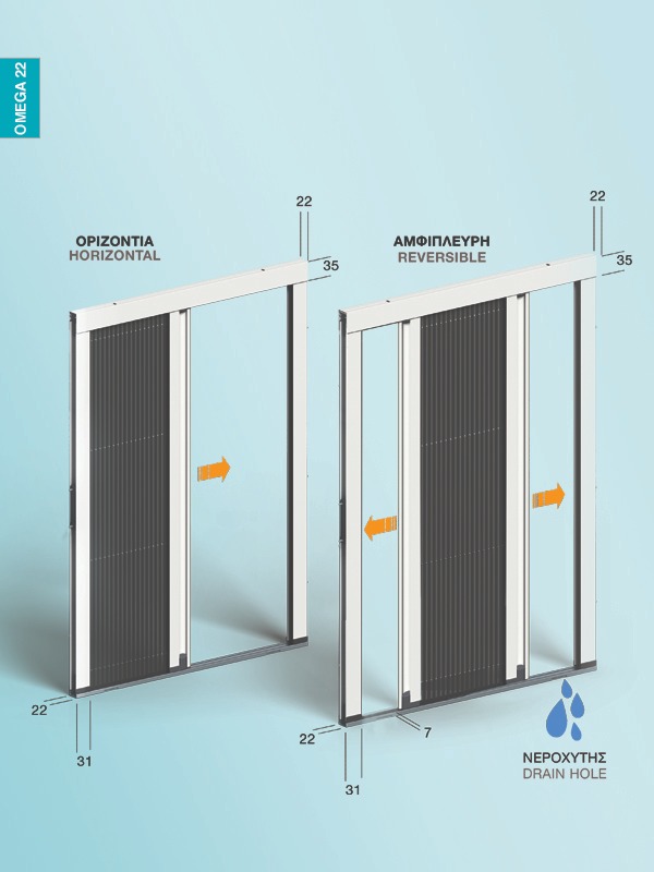 Η OMEGA 22, σίτα πλισέ οριζόντιας κίνησης με πλευρικά κορδόνια, προσφέρει στιβαρές κατασκευές που ξεχωρίζουν για την απόλυτη ρύθμιση και σωστή λειτουργία τους, χωρίς κανένα συμβιβασμό τόσο σε ποιότητα όσο και στην εφαρμογή.